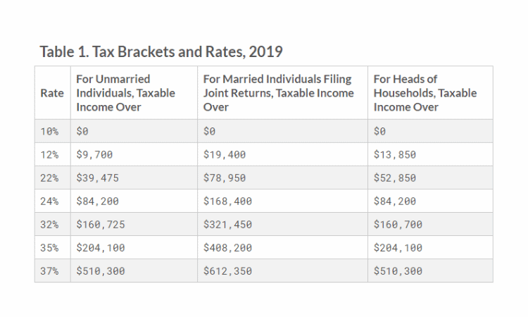 Federal Income Tax Chart For 2019 - Ponasa