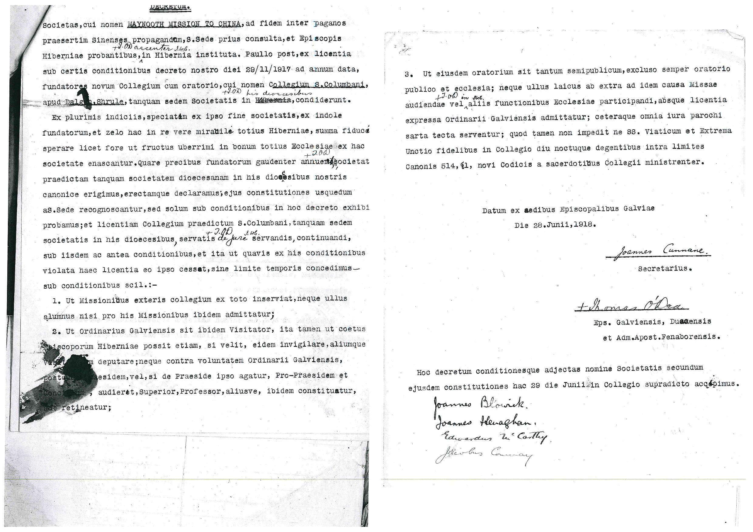 Decree - Columban Missionaries